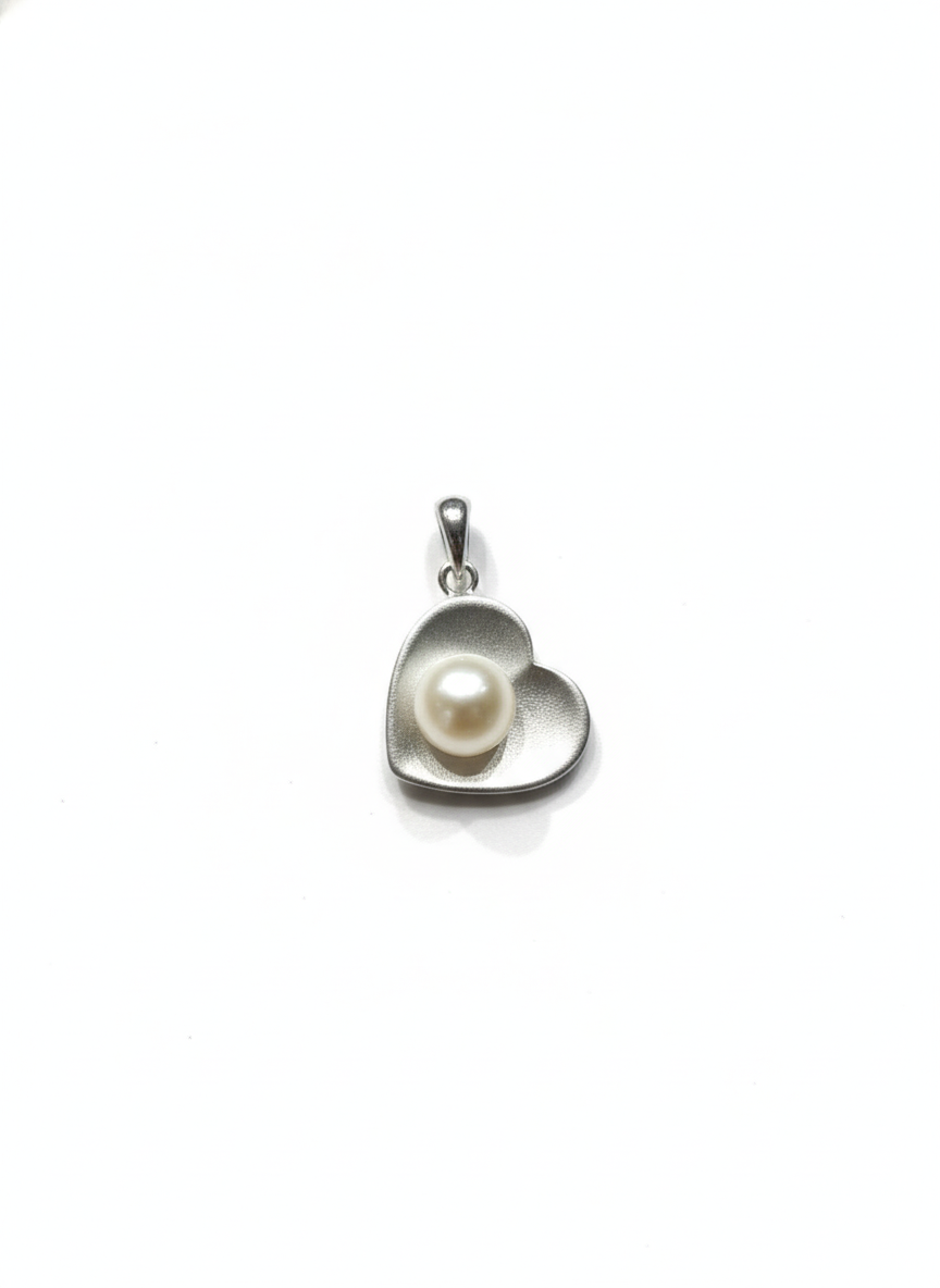 The Pearl Embrace Heart Pendant is a timeless 925 sterling silver piece featuring a luminous pearl nestled within a modern heart silhouette, offering a soft and elegant expression of love.